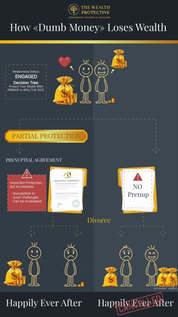 Prenups get invalidated for the flimsiest of reasons. This coverage should be every HNWI’s first line of defense. It’s financially irresponsible to enter a serious relationship without it.